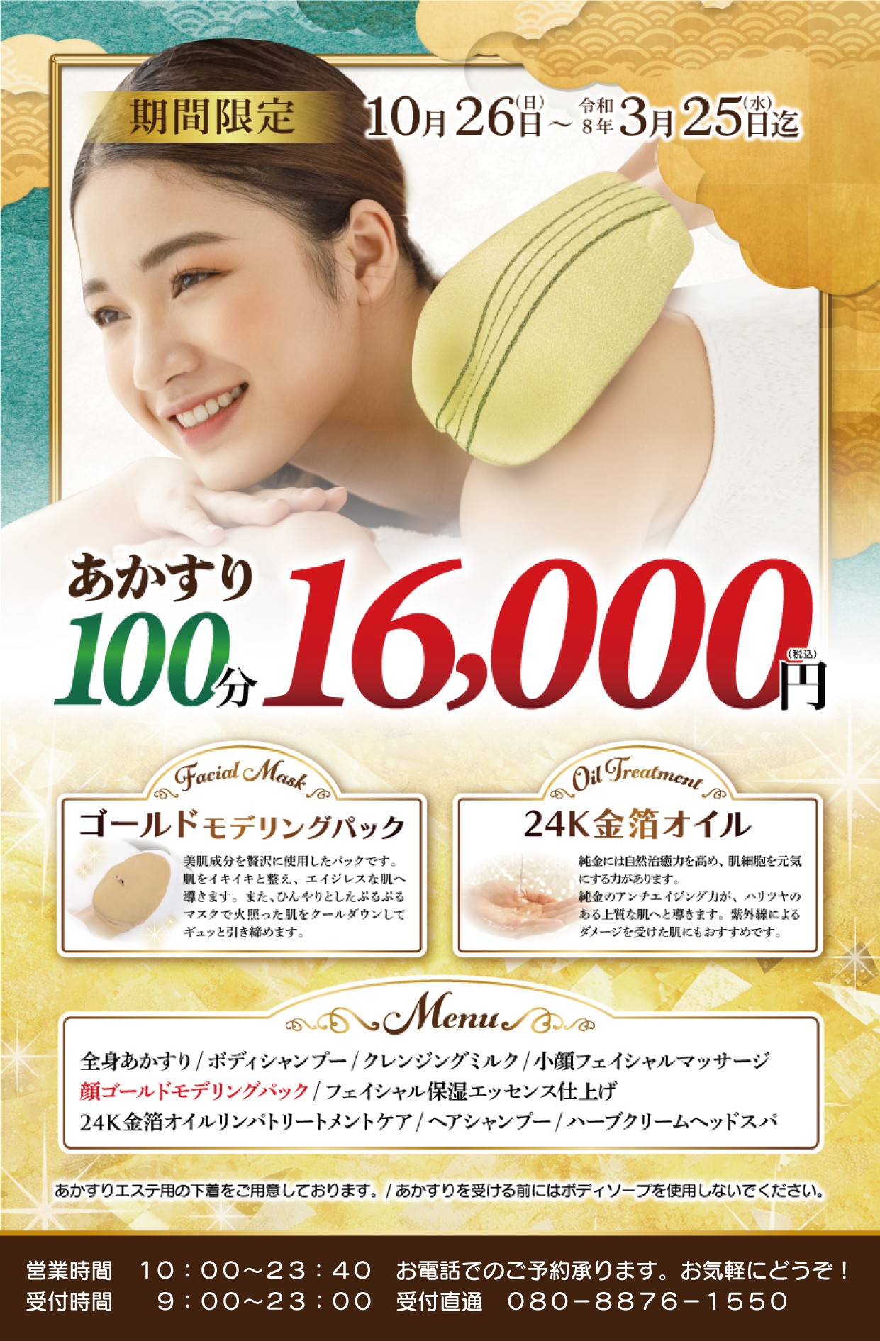 | 10/26~3/25限定 特別コース | 100分/16,000円 詳細はこちら |